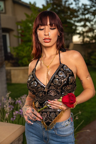 • Velour Black Venus Sequin Top