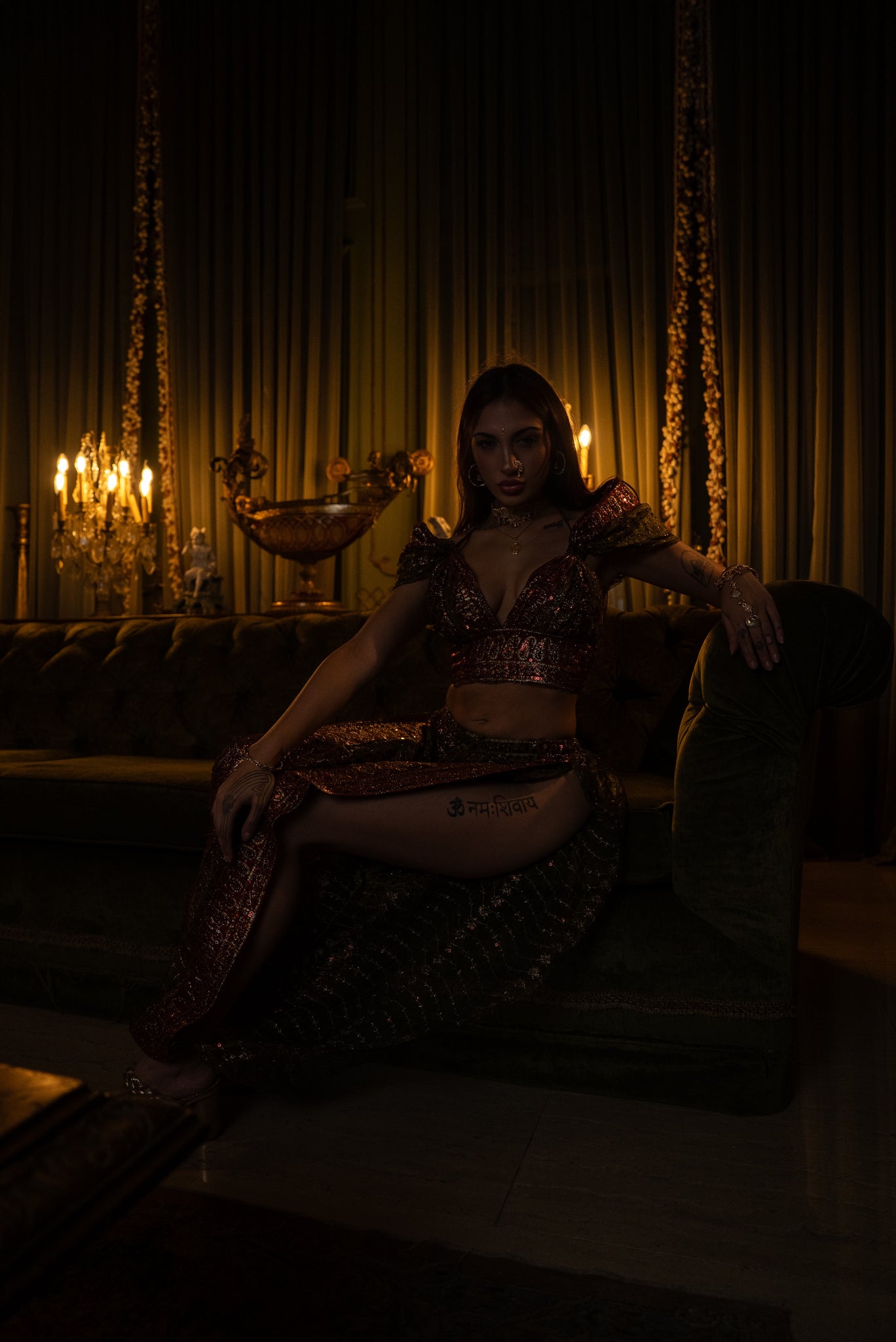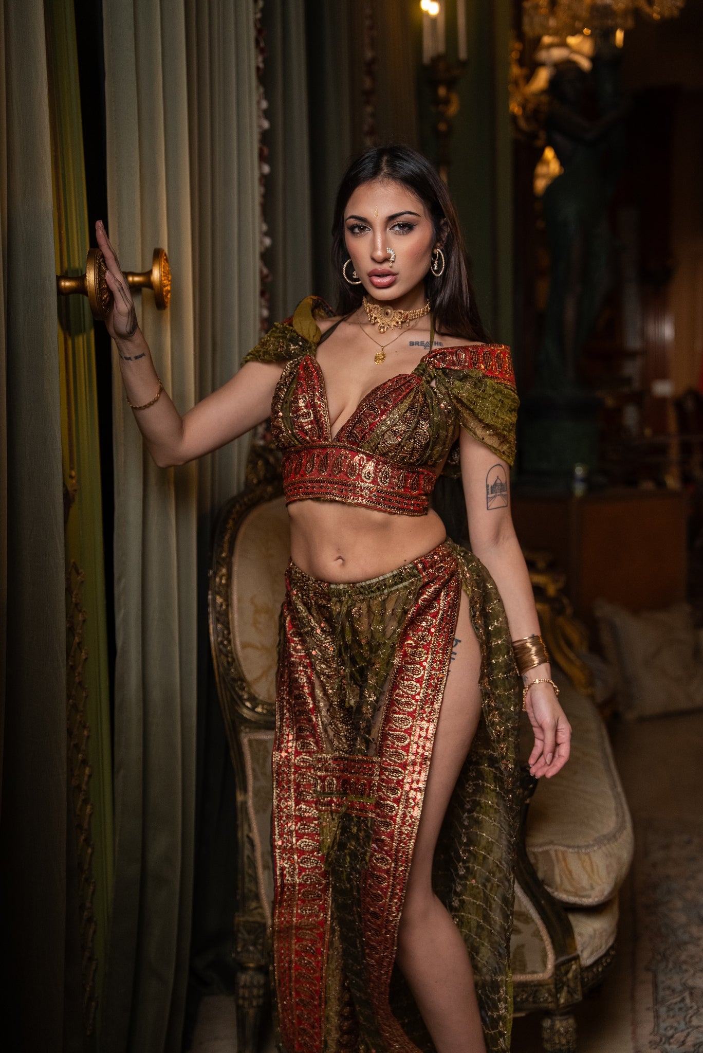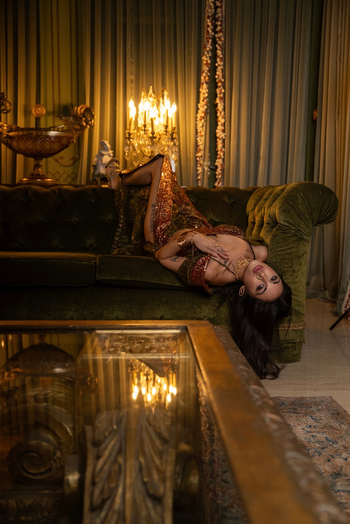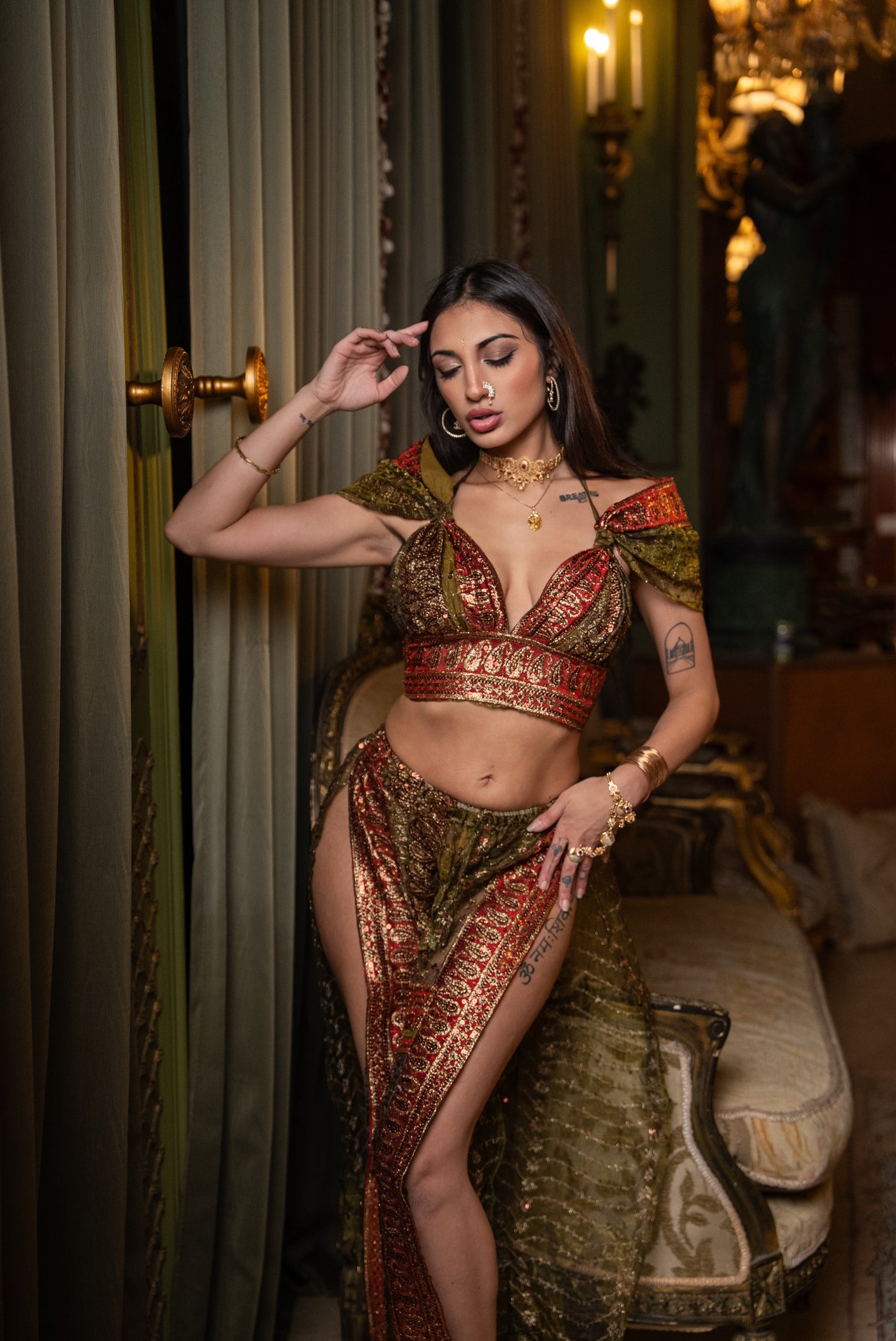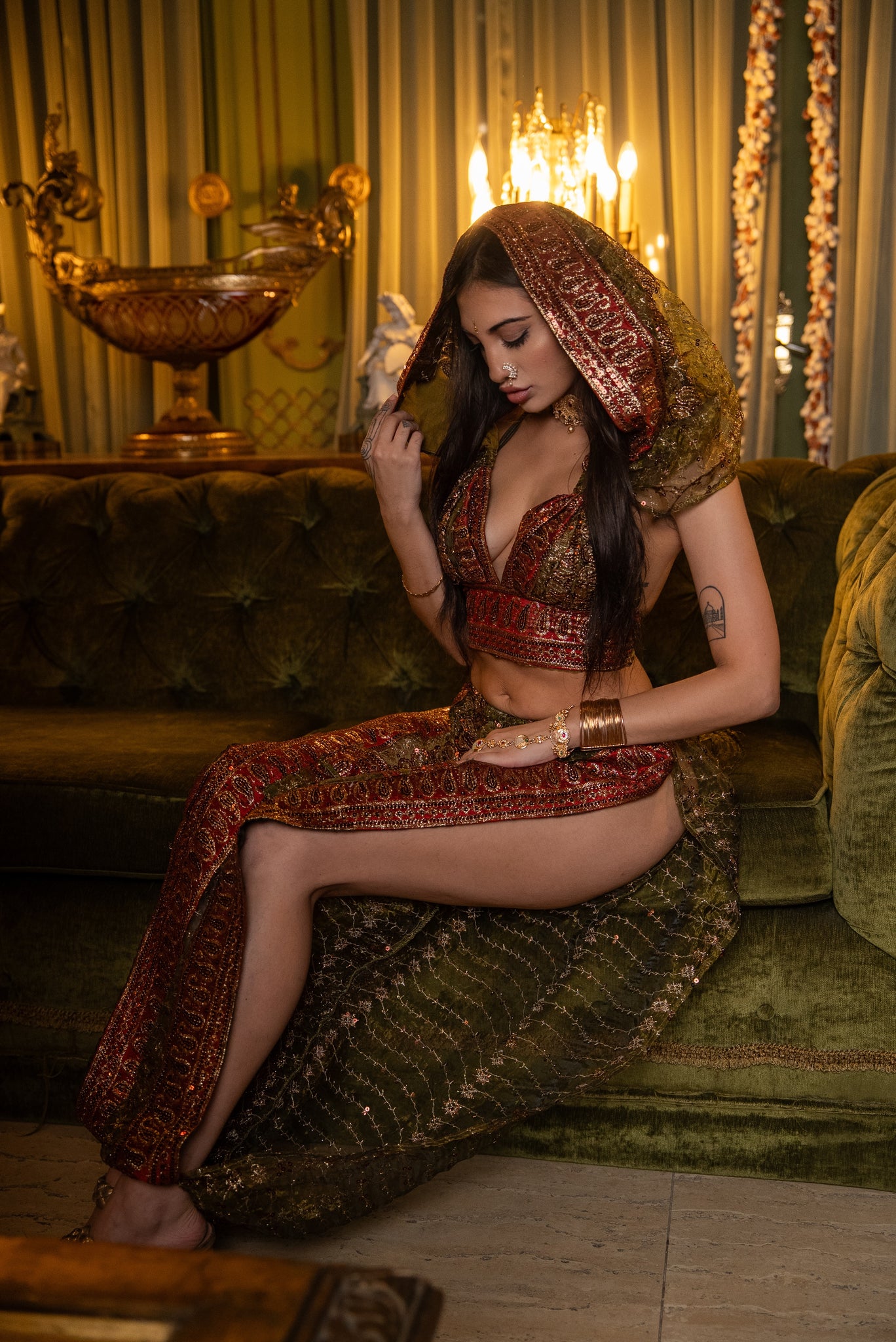 jasmine top features hood or off shoulder jasmine look. top ties behind neck and back to fit custom to your curves.