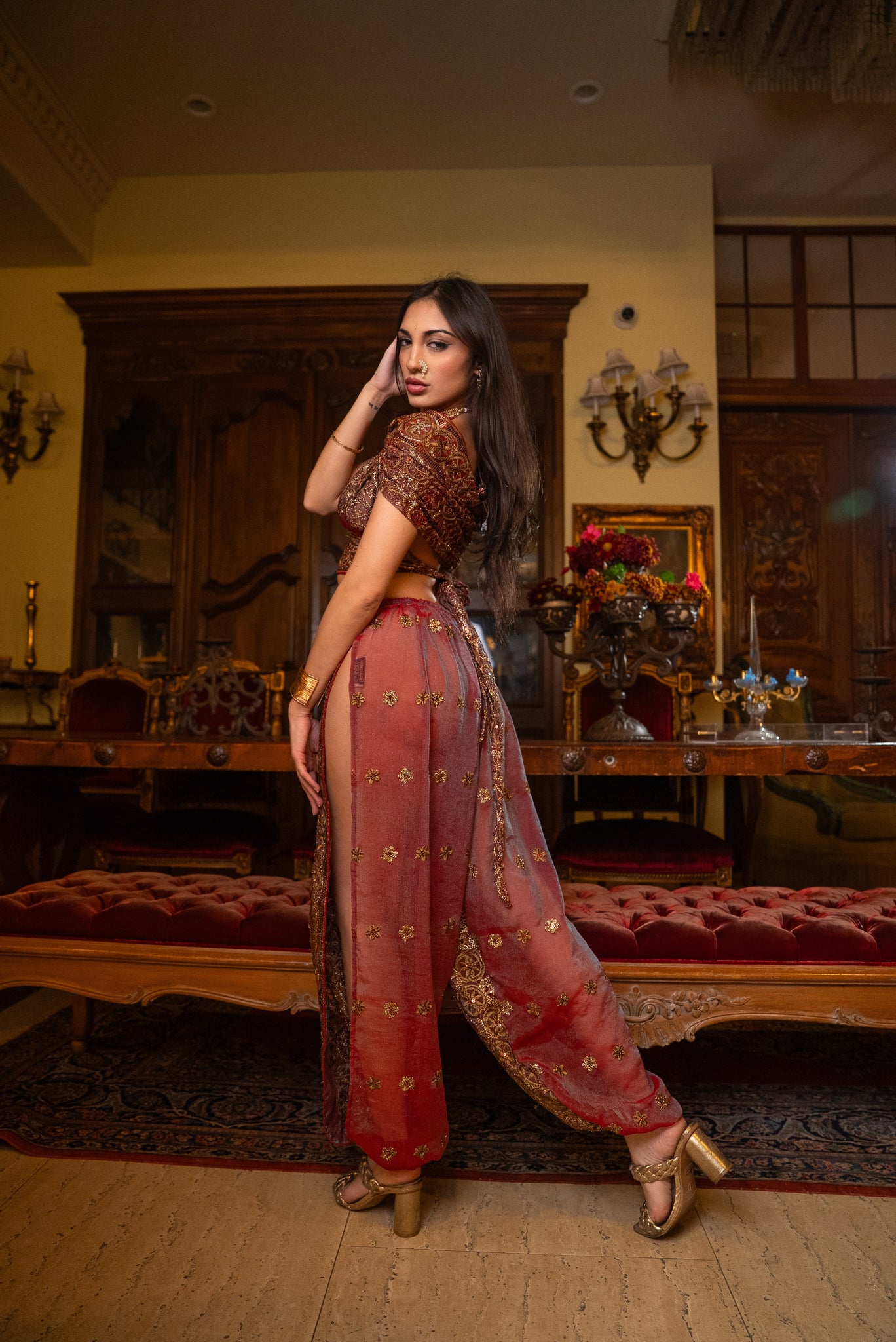 slit pants feature an elastic waistband with a drawstring to adjust to your curves. slits on each side, and pocket on front of each leg.