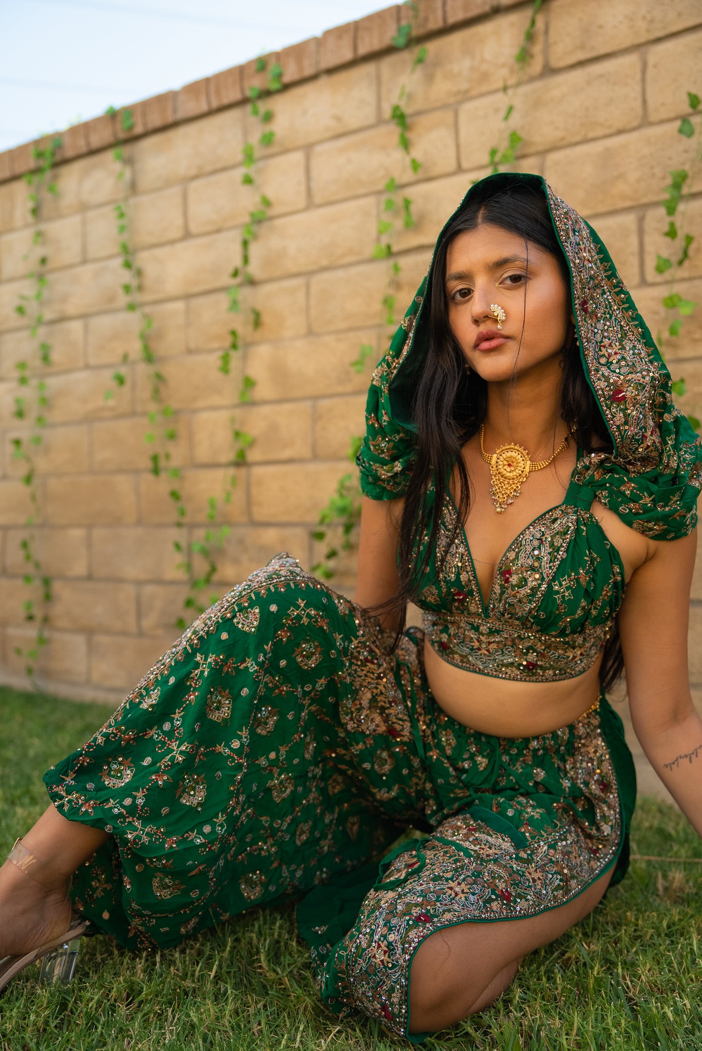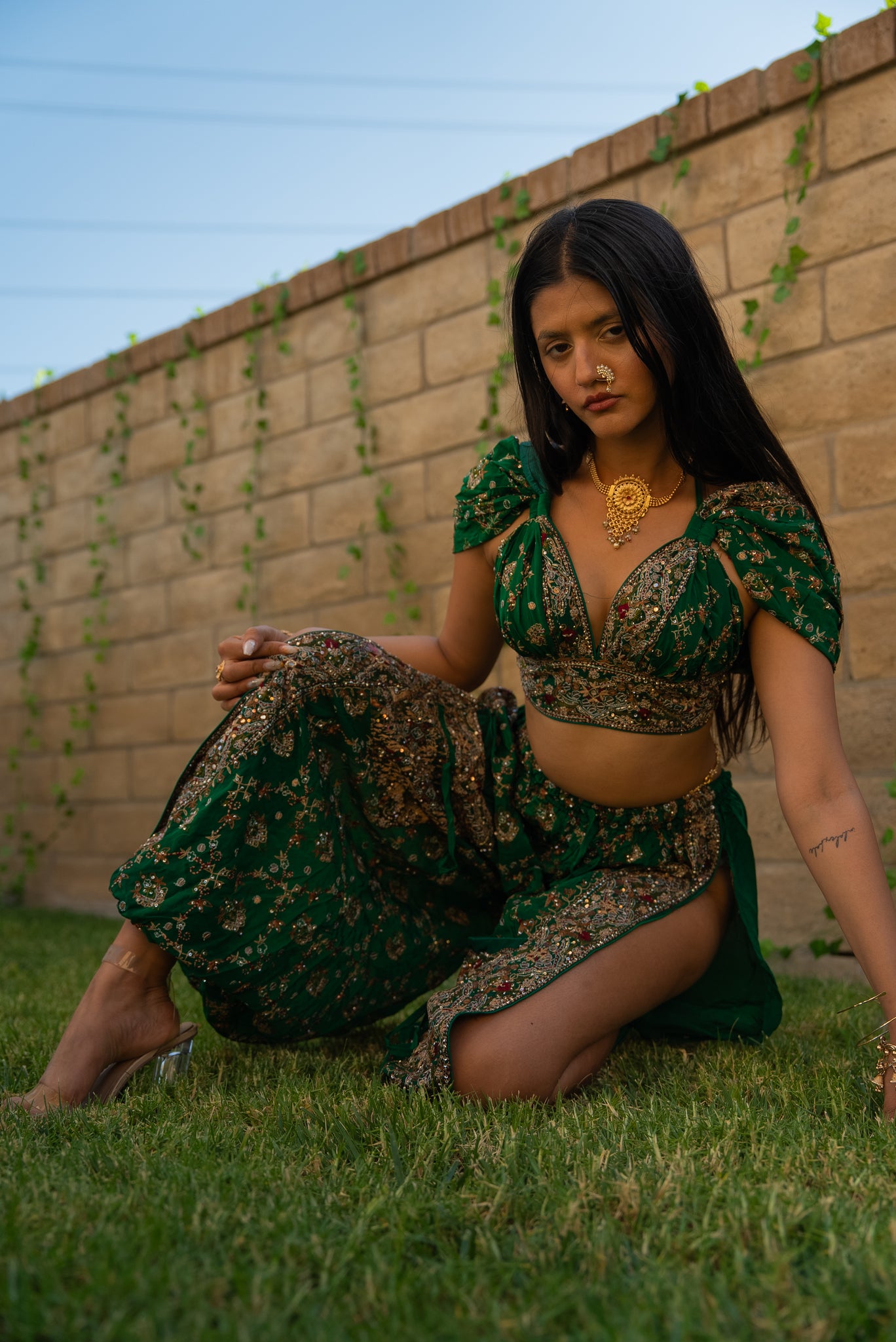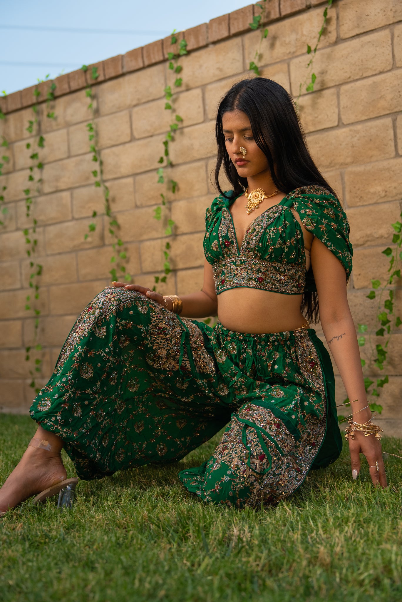 one of a kind up cycled vintage saree two-piece set