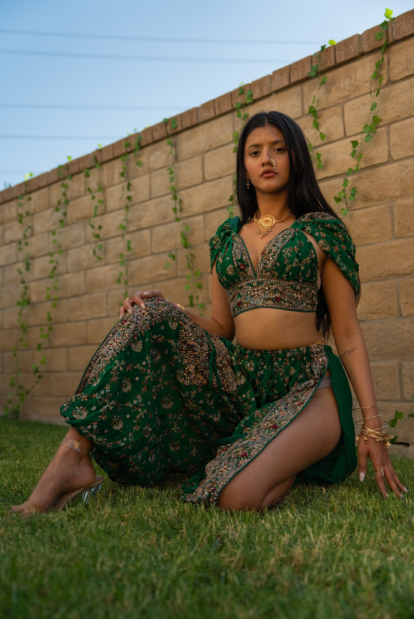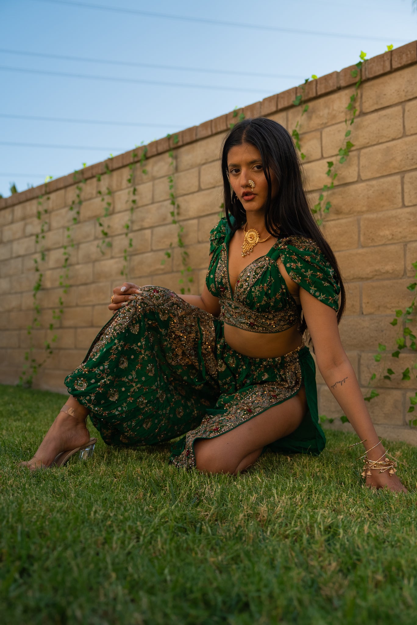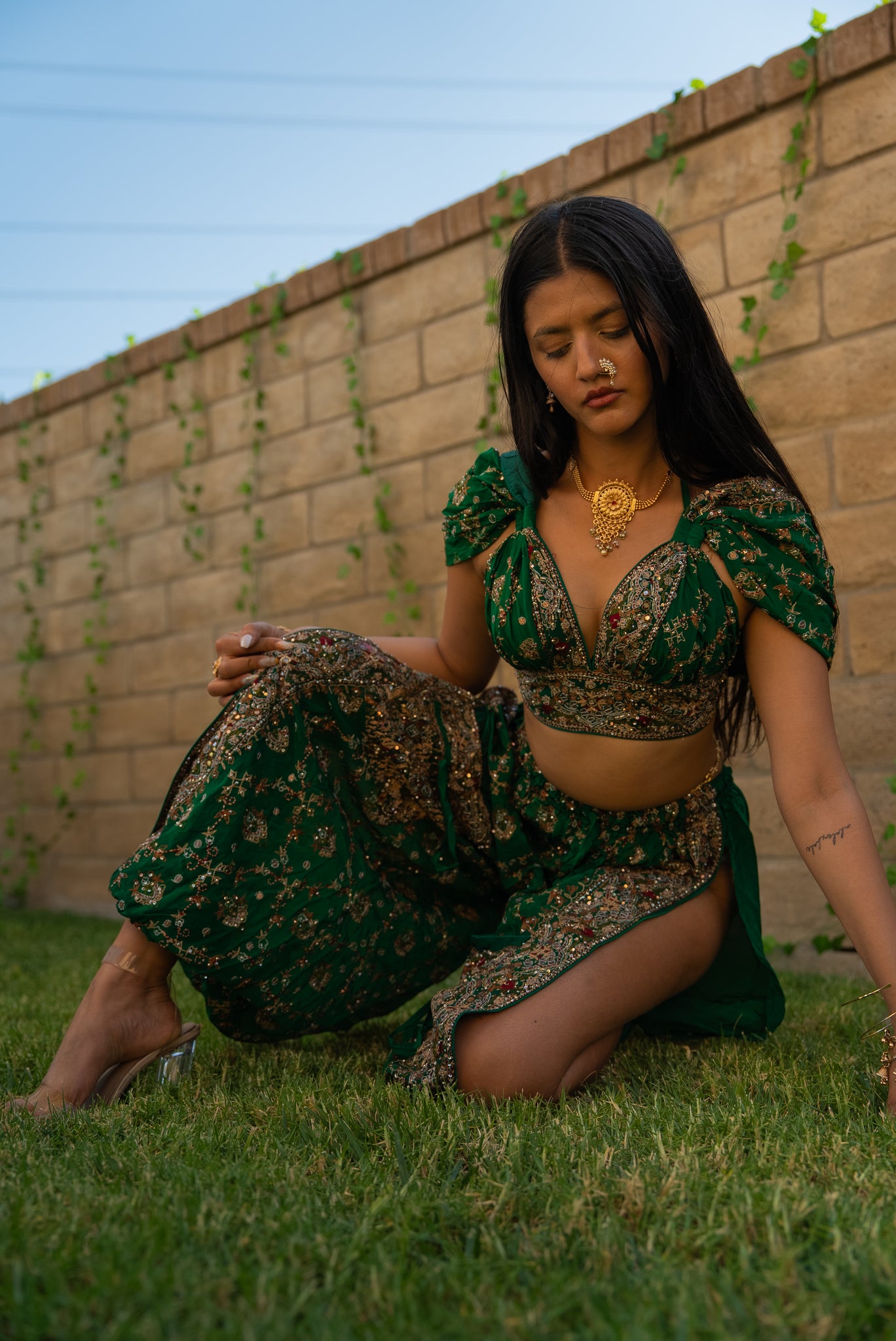 one of a kind up cycled vintage saree two-piece set