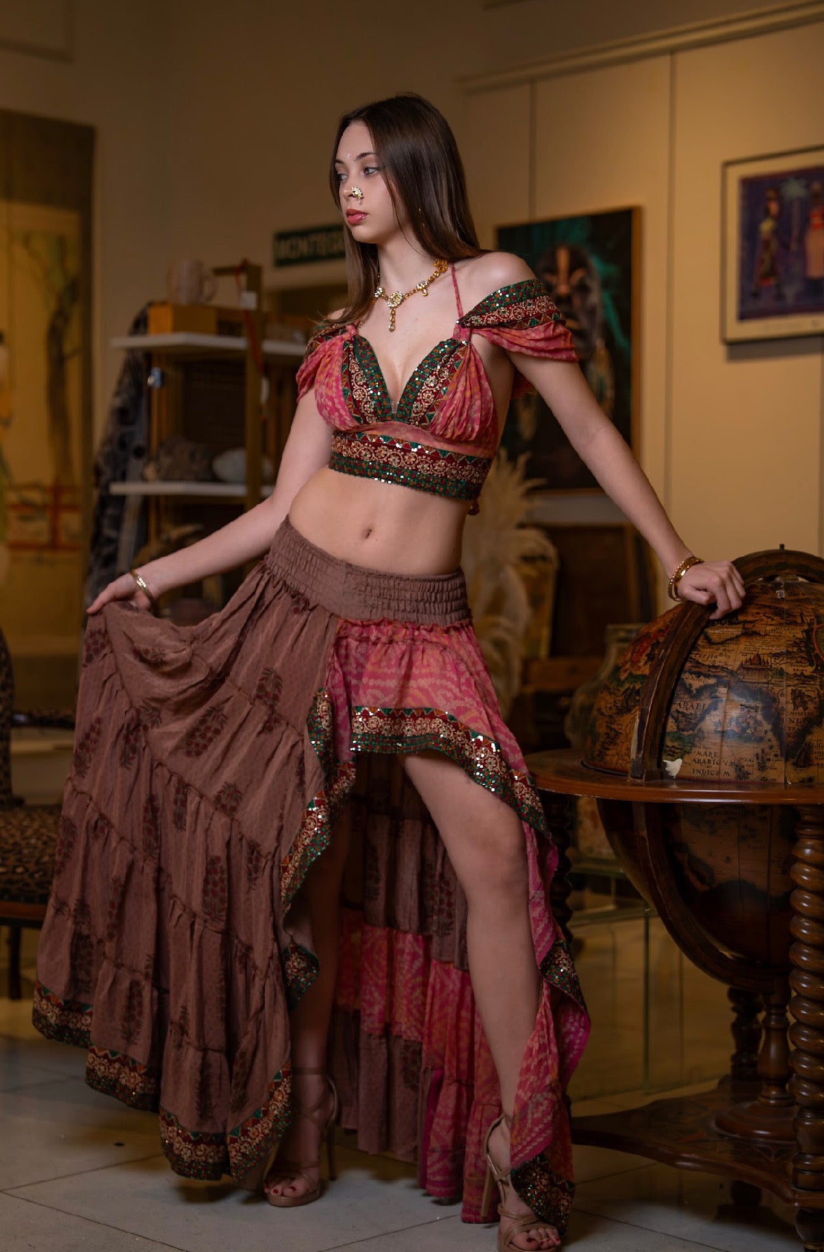 one of a kind vintage saree two piece set