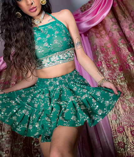 electric emerald mini skirt