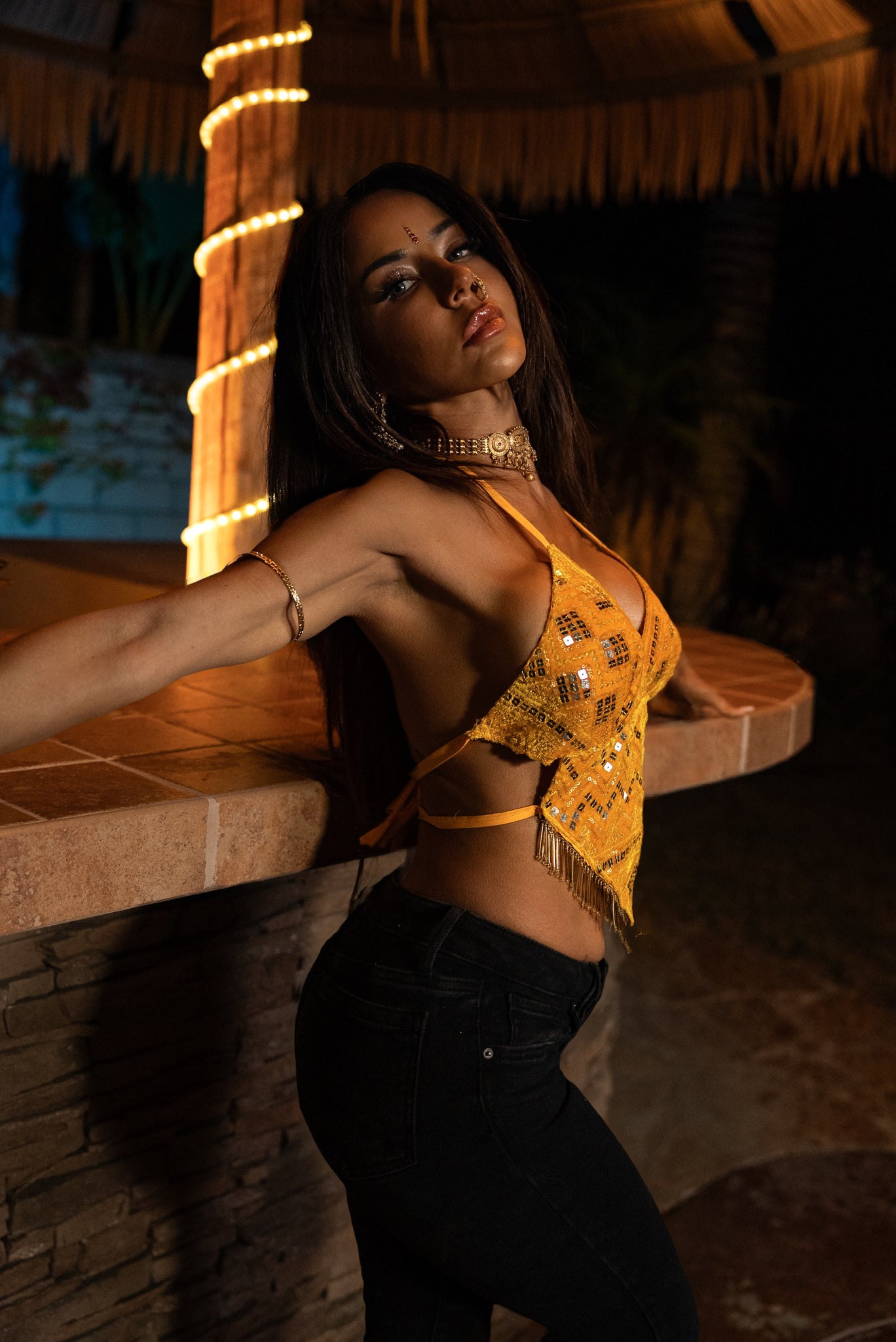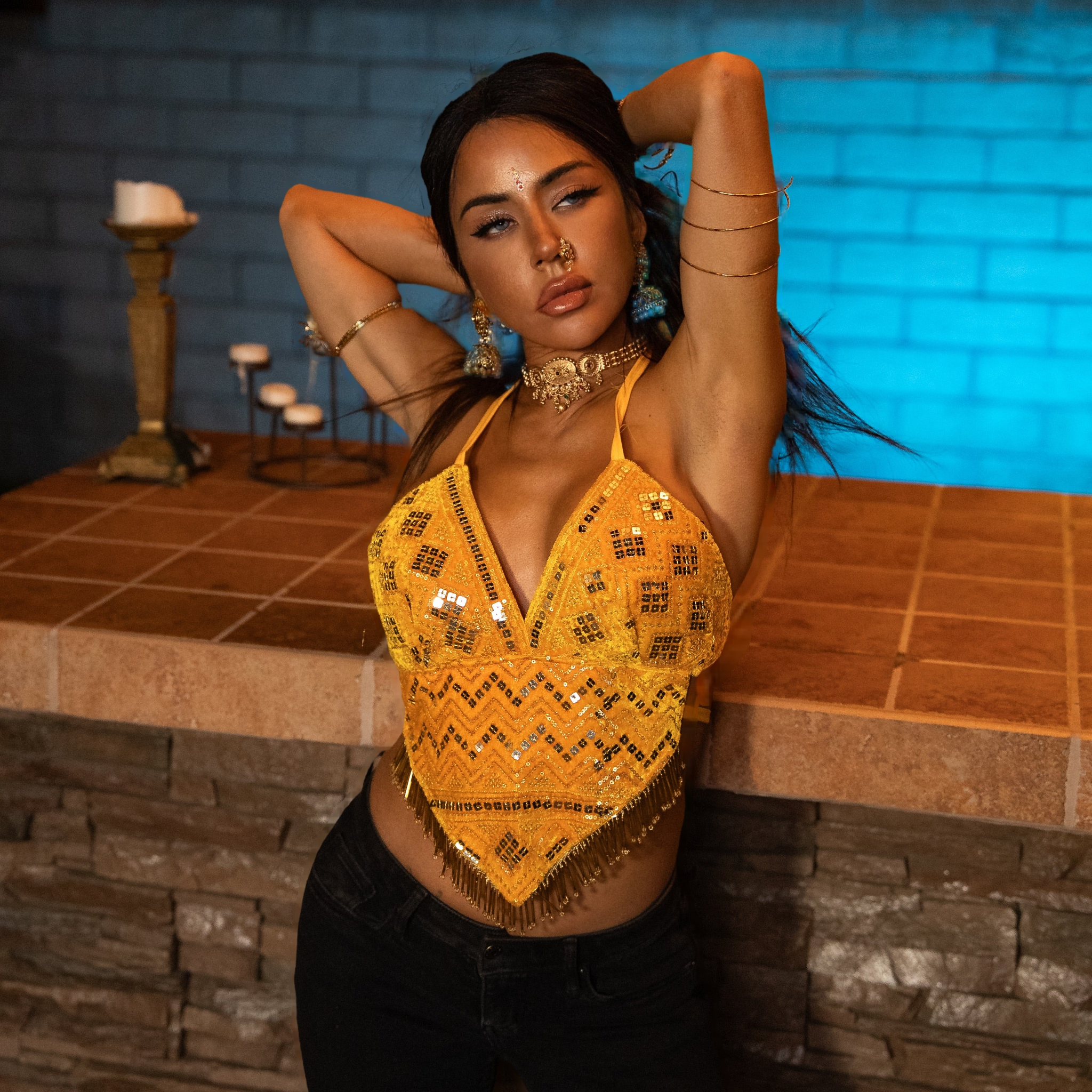• Load image into Gallery viewer, Sun Goddess Yellow Venus Sequin Top