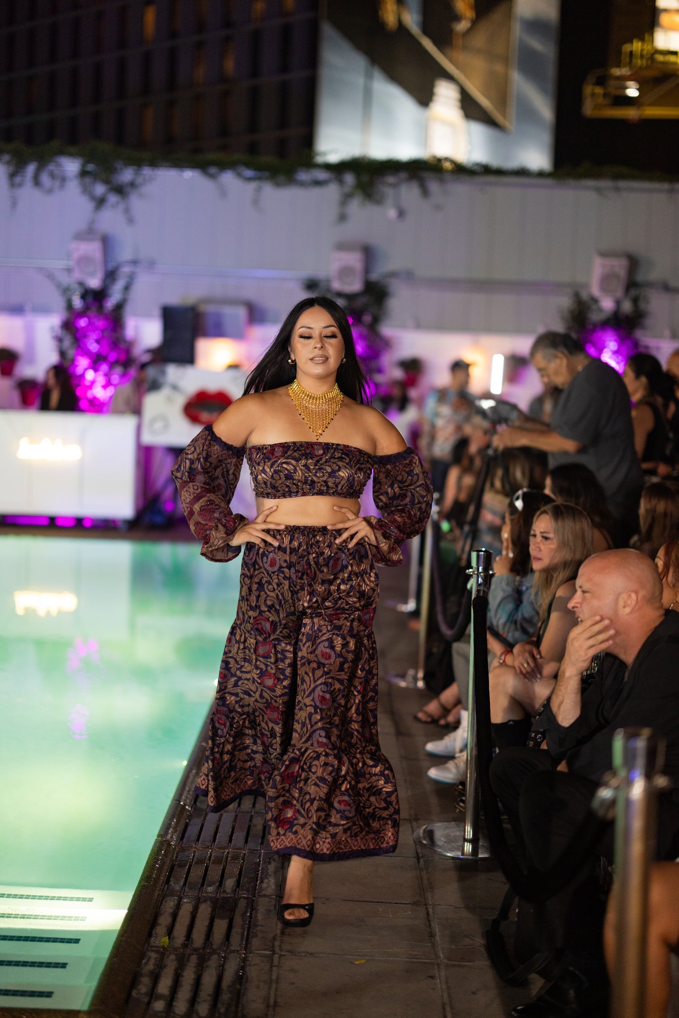 jasmine top features hood or off shoulder jasmine look. top ties behind neck and back to fit custom to your curves.
